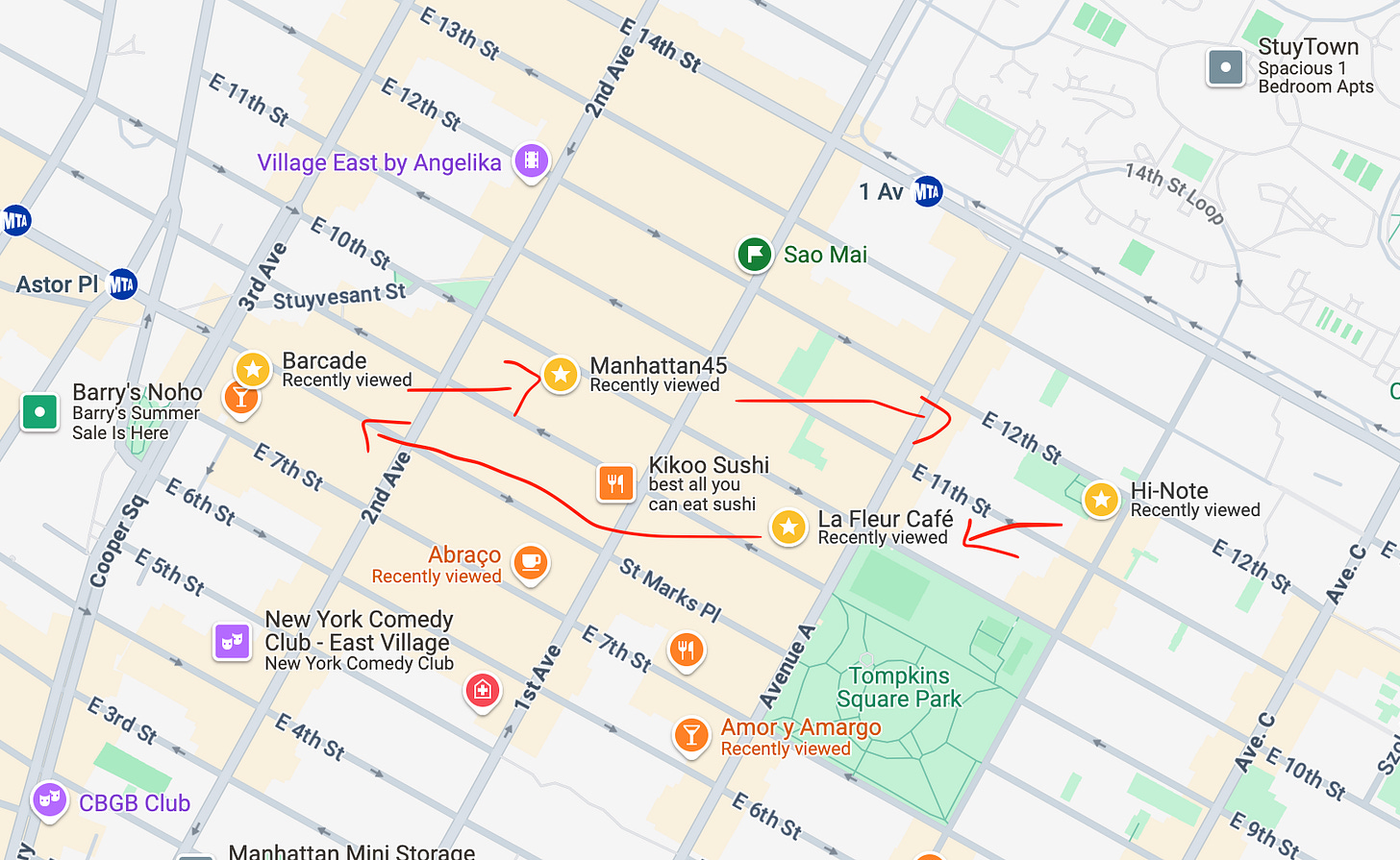I had created 4 “stations” scattered across the east village and rotated the groups through the stations. Each station would take approximately 20 minutes and I had set up a method for them to receive a new envelope at the end of each station. This also prevented groups from running into each other: if everything went according to plan, each group would leave their station at exactly the same time and rotate clockwise to the next station.